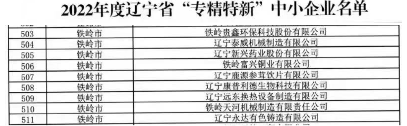 富興銅業(yè)評(píng)為2022年度遼寧省"專精特新"中小企業(yè)